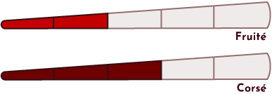 16°C, La robe est rouge mat légèrement tuilée, aux arômes de kirsch pour une finale soyeuse.
